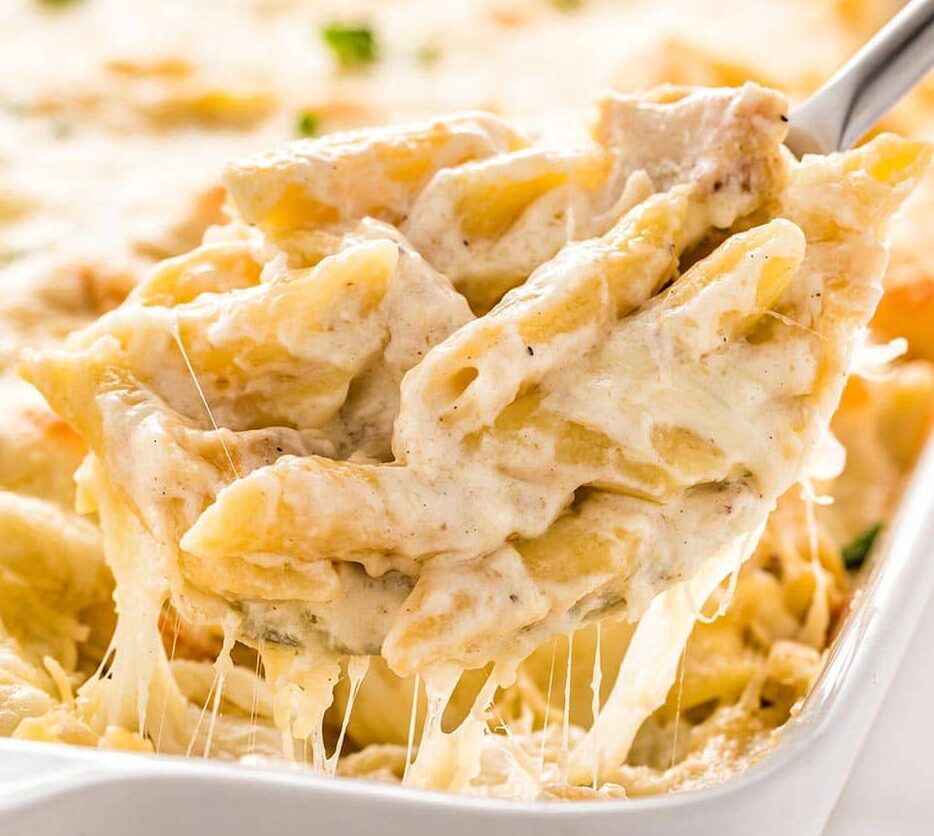 Baked Pasta with creamy alfredo, grilled chicken, and broccoli. Served with a garden salad and Parmesan peppercorn dressing. Flour chocolate chip cookies for a sweet treat.