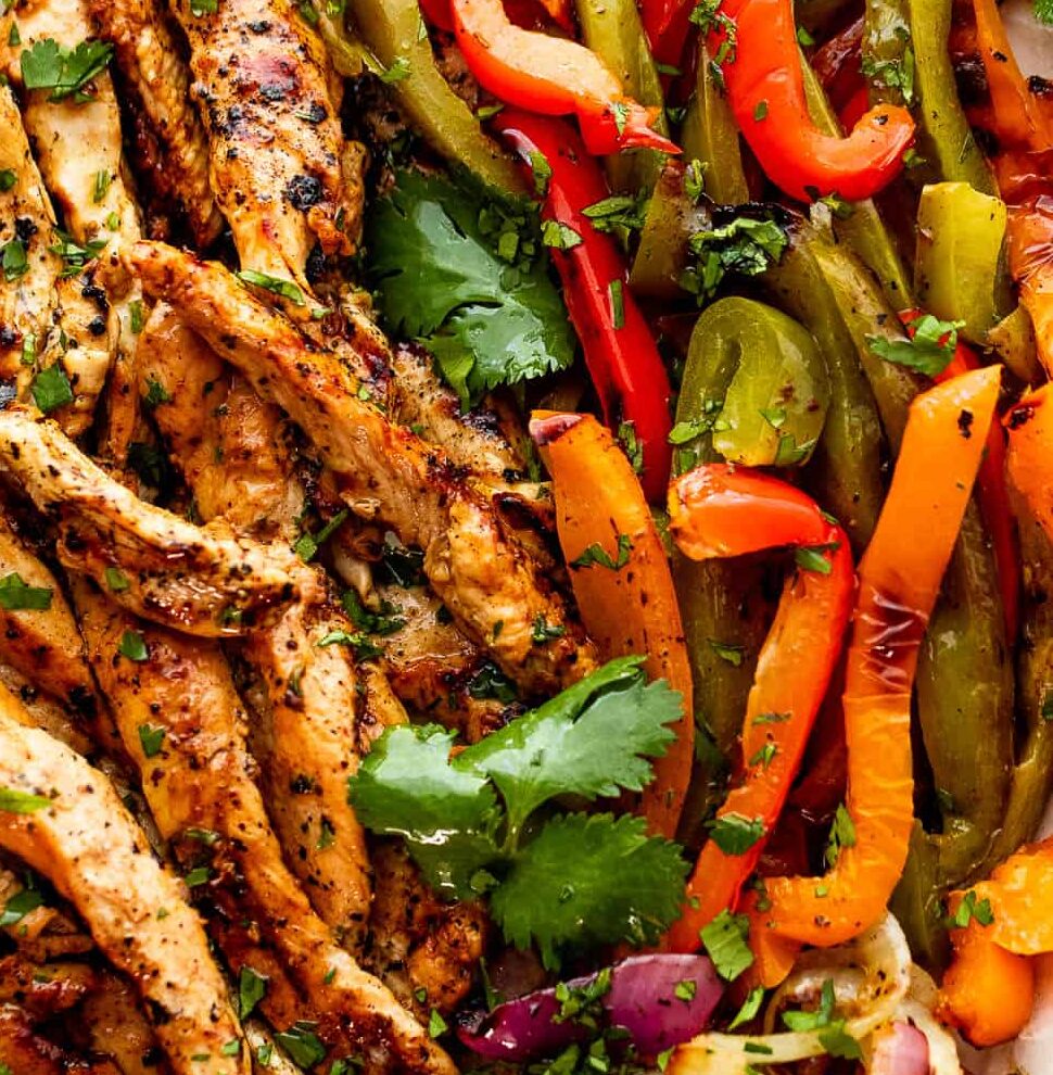One pound grilled adobo lime chicken, fajita vegetables, yellow seasoned rice, stewed black beans, and pico de gallo.