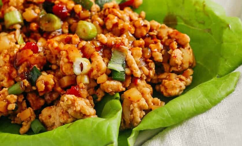 One pound of ground turkey seasoned with ginger, garlic, soy sauce, hoisin, scallions, and shredded carrots. Served with Fresh Lettuce cups.